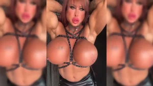 Holy crap, the fake tits on female bodybuilder Barbara Carita are massive! She just upgraded her big boobs to 2000cc, and they look amazing. Watch her play around and see if you can keep your cock in your pants!